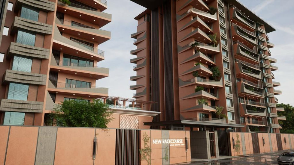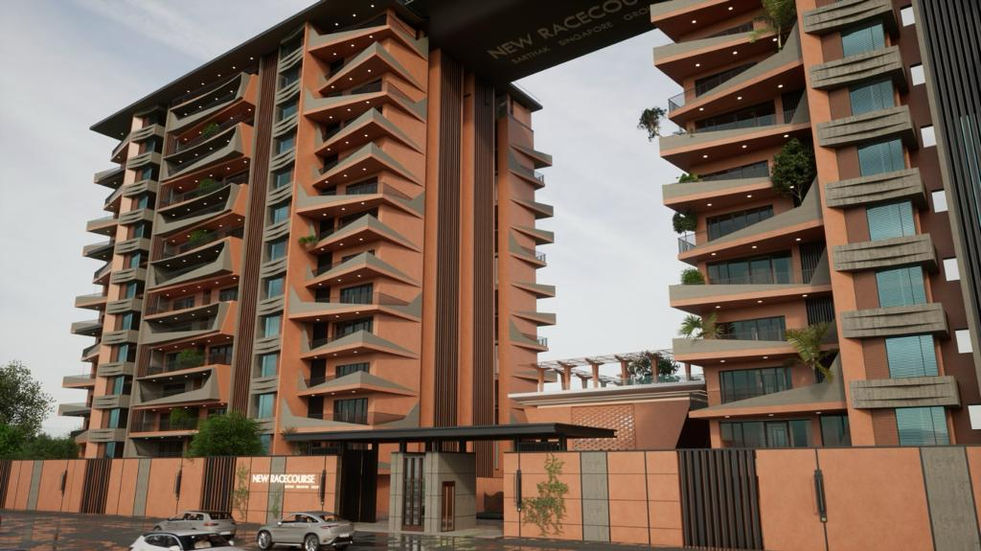 Racecourse is a modern commercial project that captures the essence of minimalist architecture and purposeful design. With its sharp lines, geometric forms, and glass-clad surfaces, the project stands as a sleek landmark within the city’s commercial landscape.